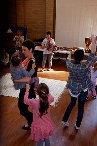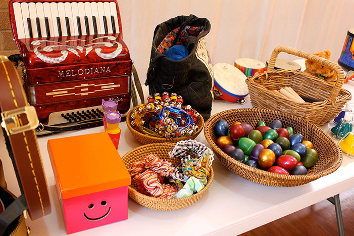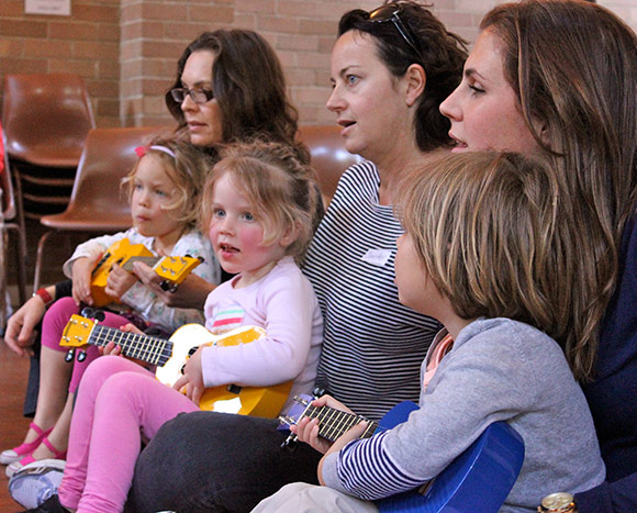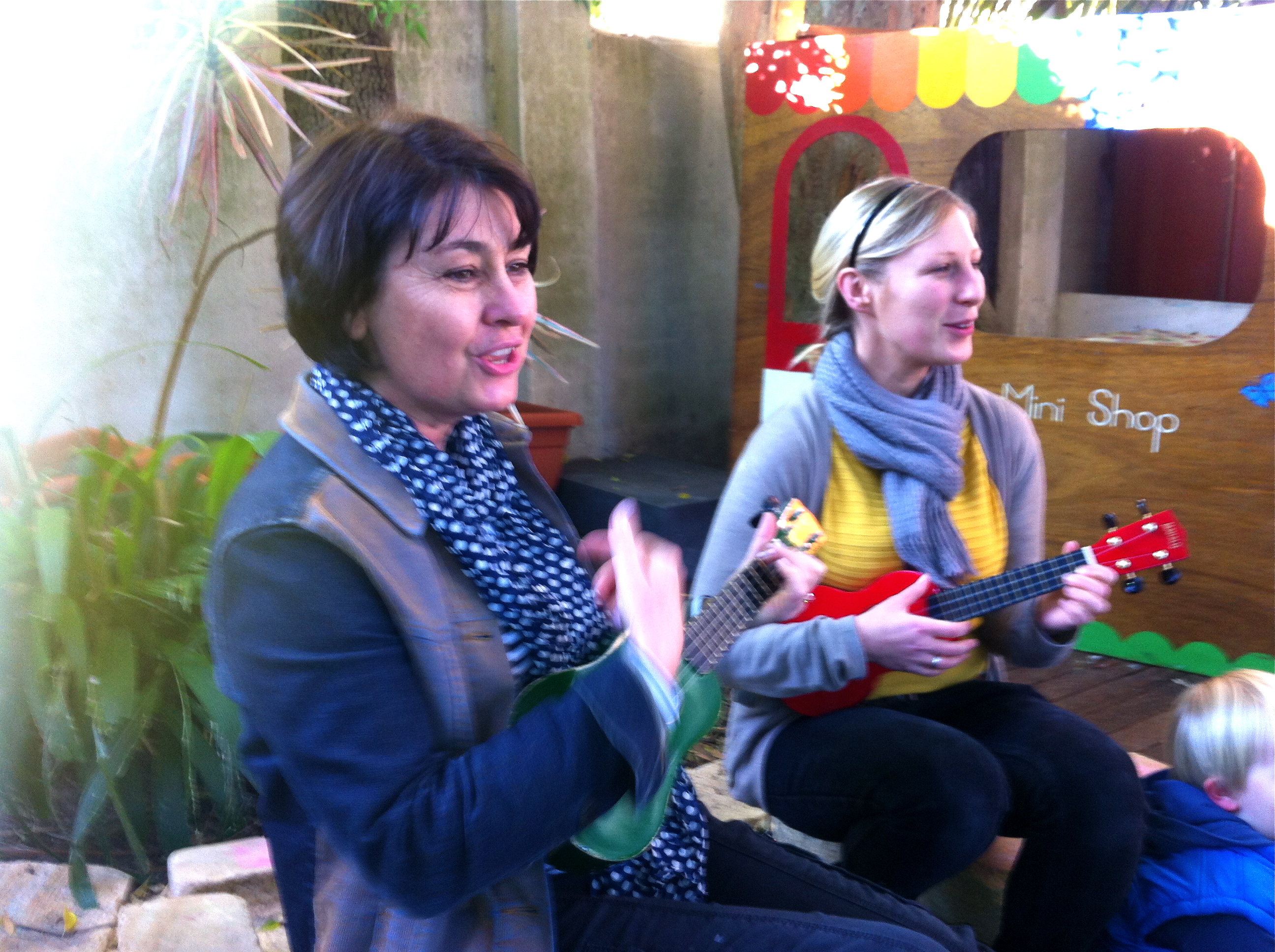 "Caption": "Child Care Centre-Jo and Vesma play ukulele for a child's birthday celebration"