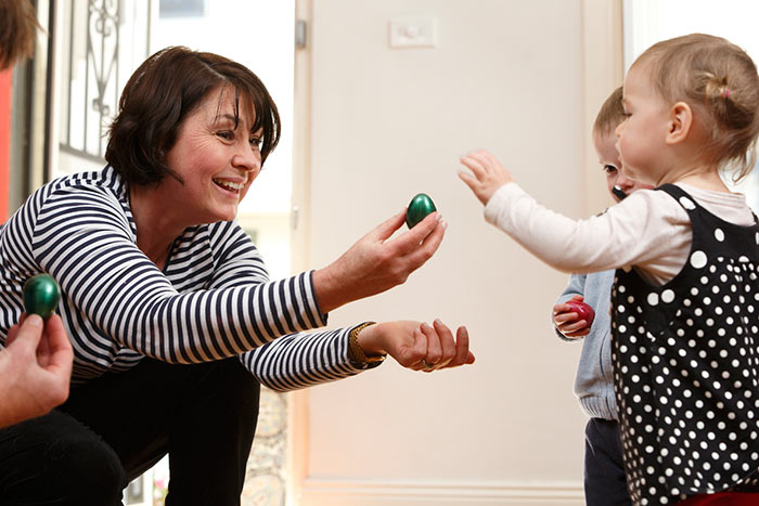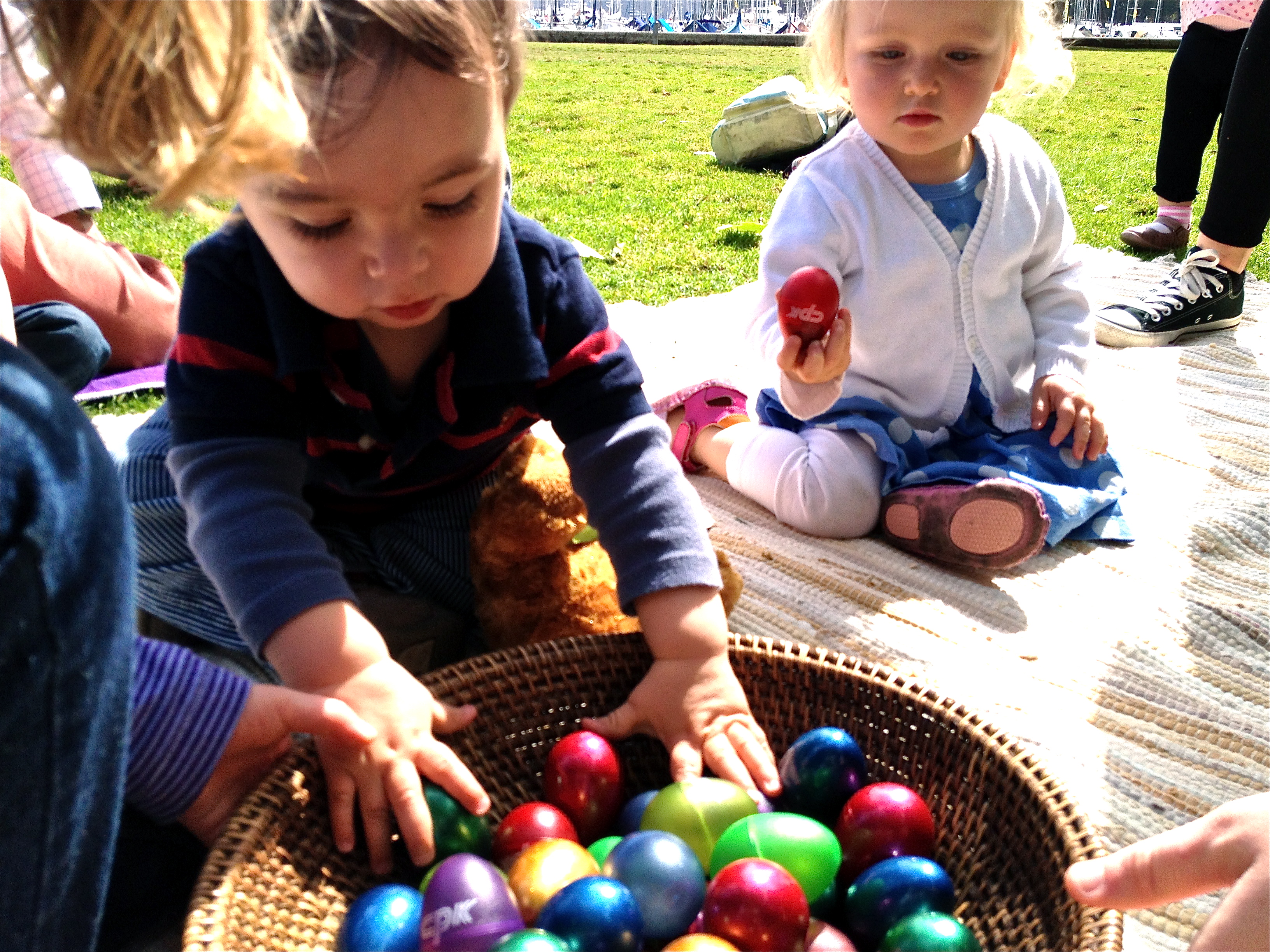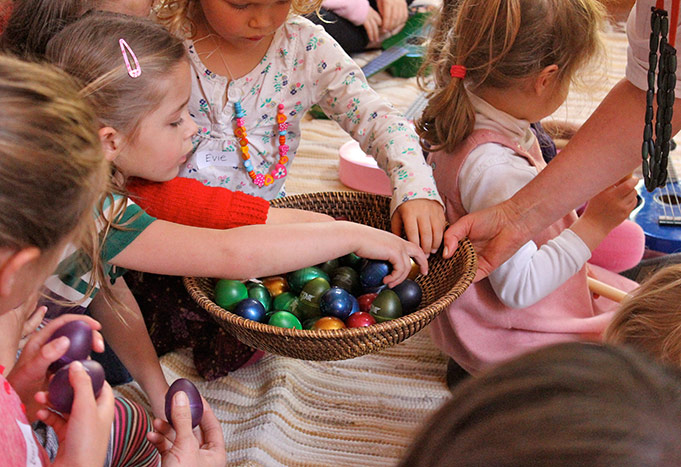 Sophia and Evie choose egg shakers