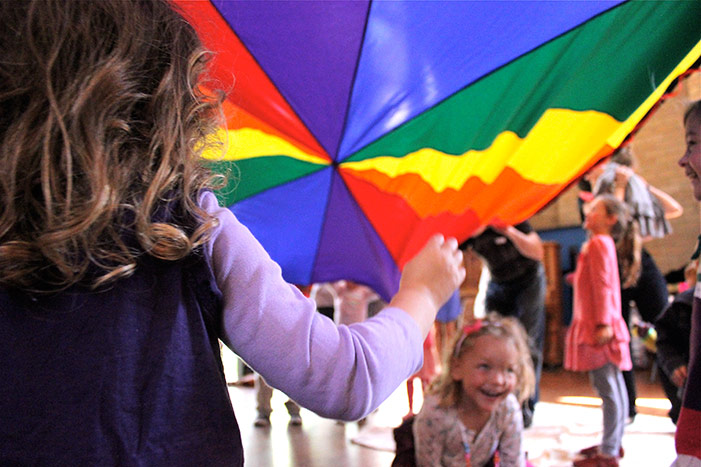 All the children underneath the parachute