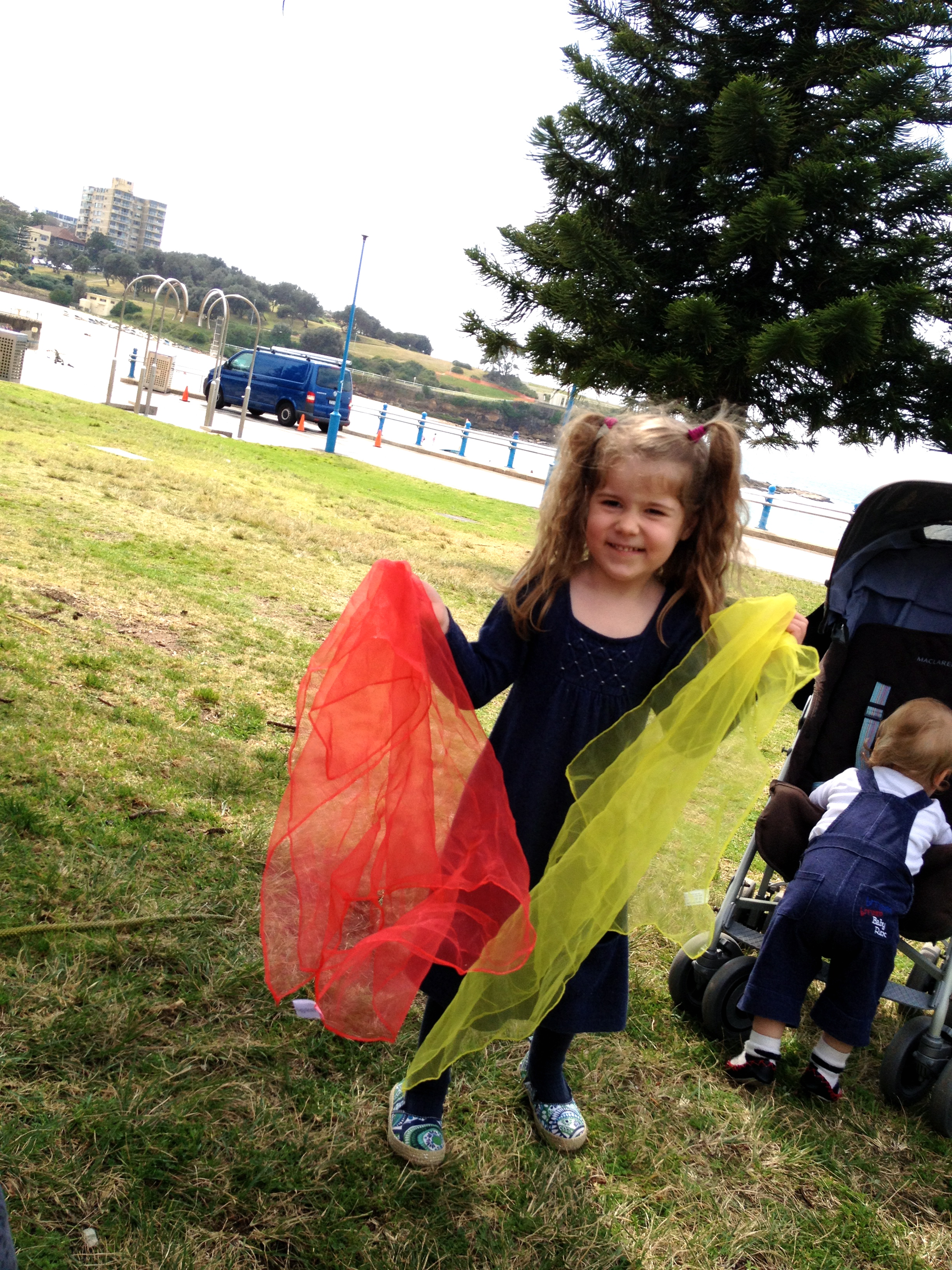 Abby - dancing -'shoo fly' with the scarves