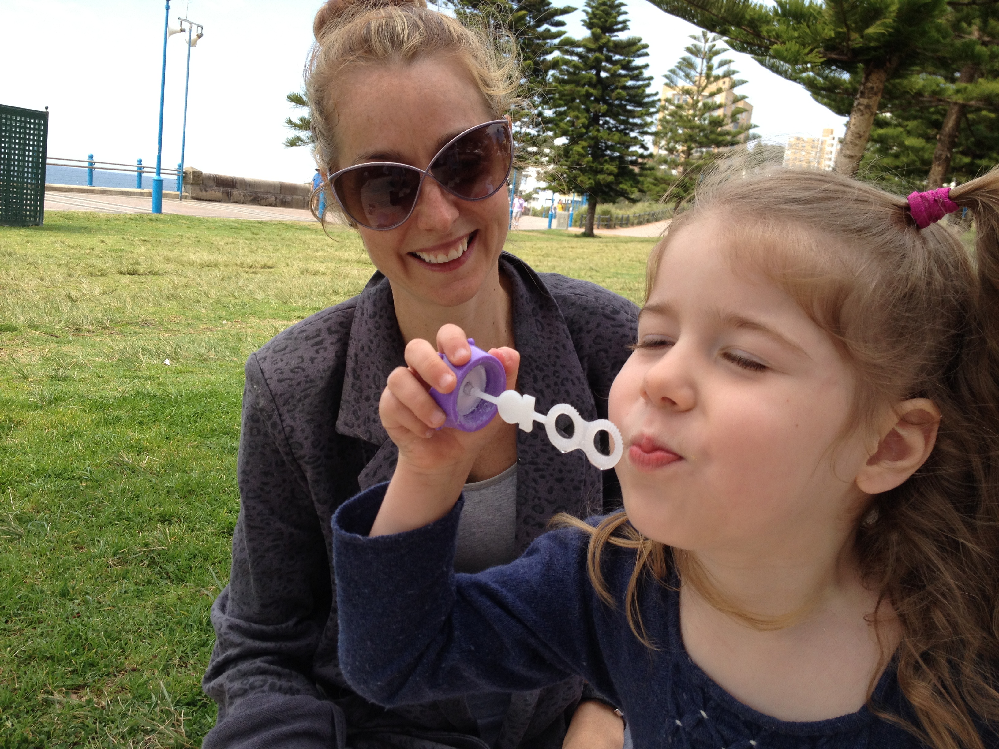 Ella practices blowing bubbles