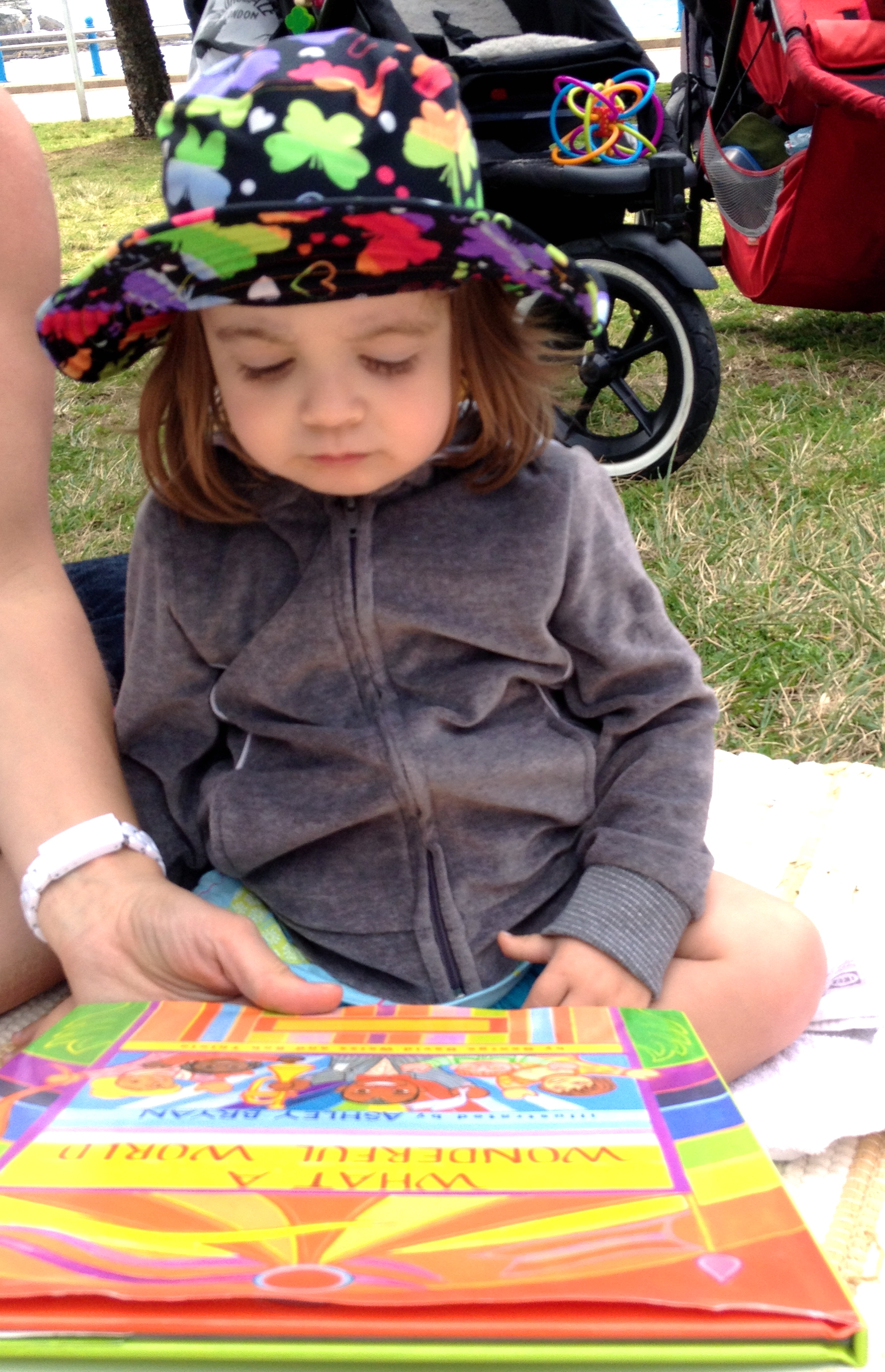 Seren enjoys the book - 'A wonderful world'